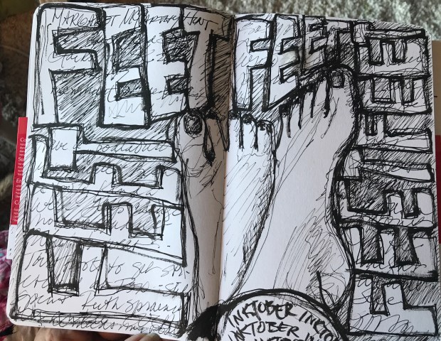It took me a couple of hours to draw all these crows. Lots of fun. I was trying to keep them fairly loose with line carrying the impact. Stillman and Birn alpha Lamy EF and that filled the sketchbook up. Yeah.