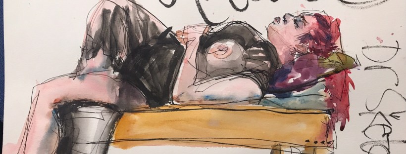 And the last one. I made an interesting discovery. I painted the sheet black clothes first. Let it dry then I painted flesh color over it so they wouldn’t run together or grey out the flesh. Her first almost nude pose ever.