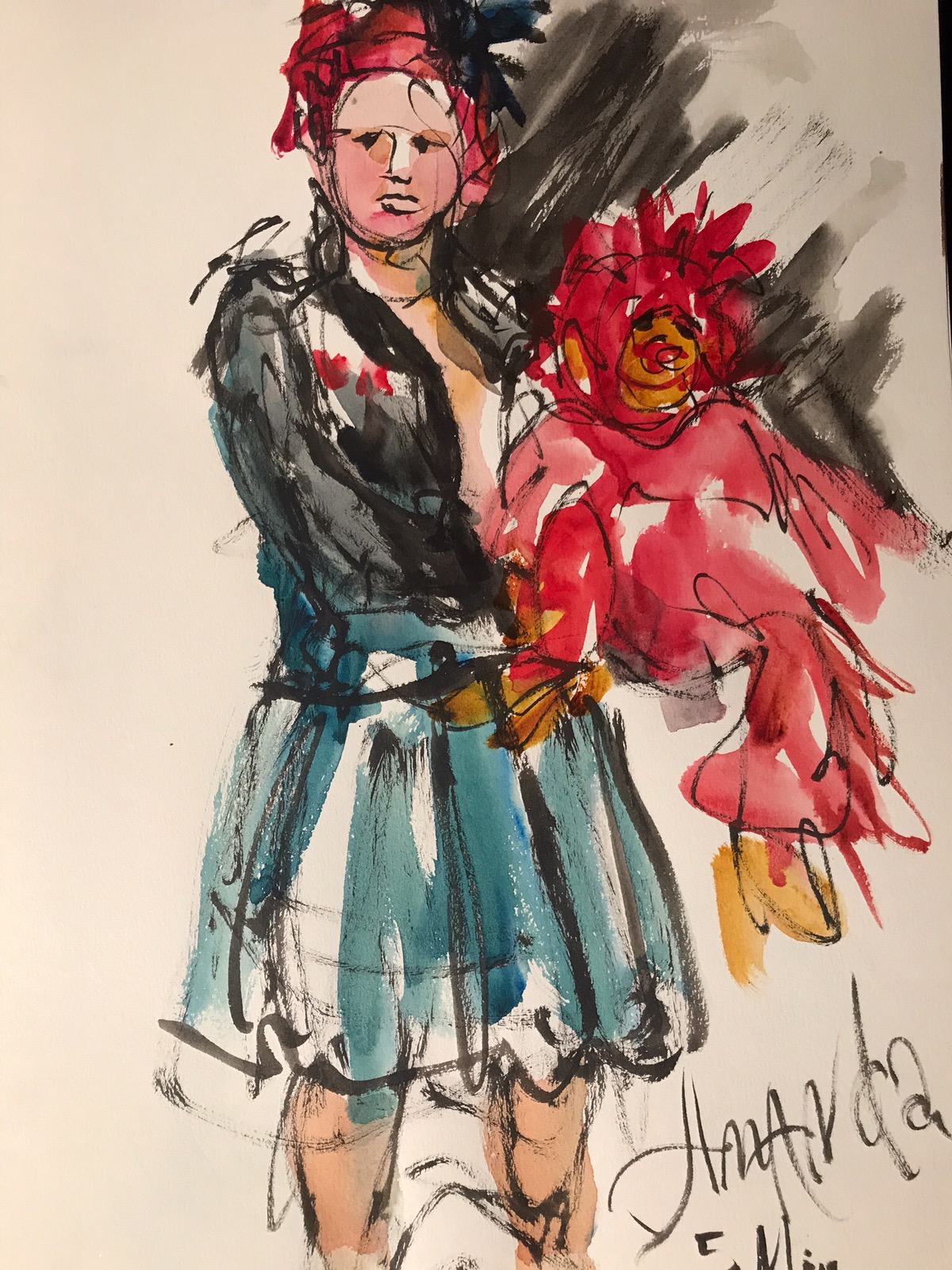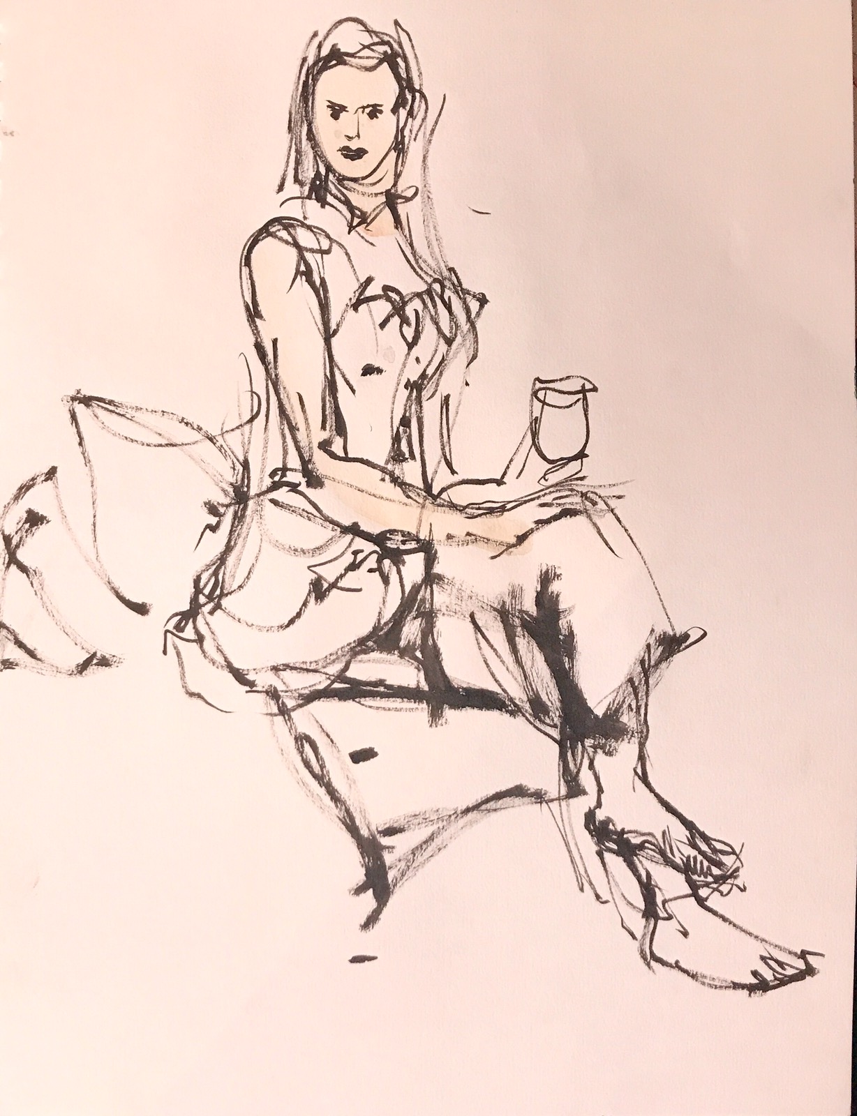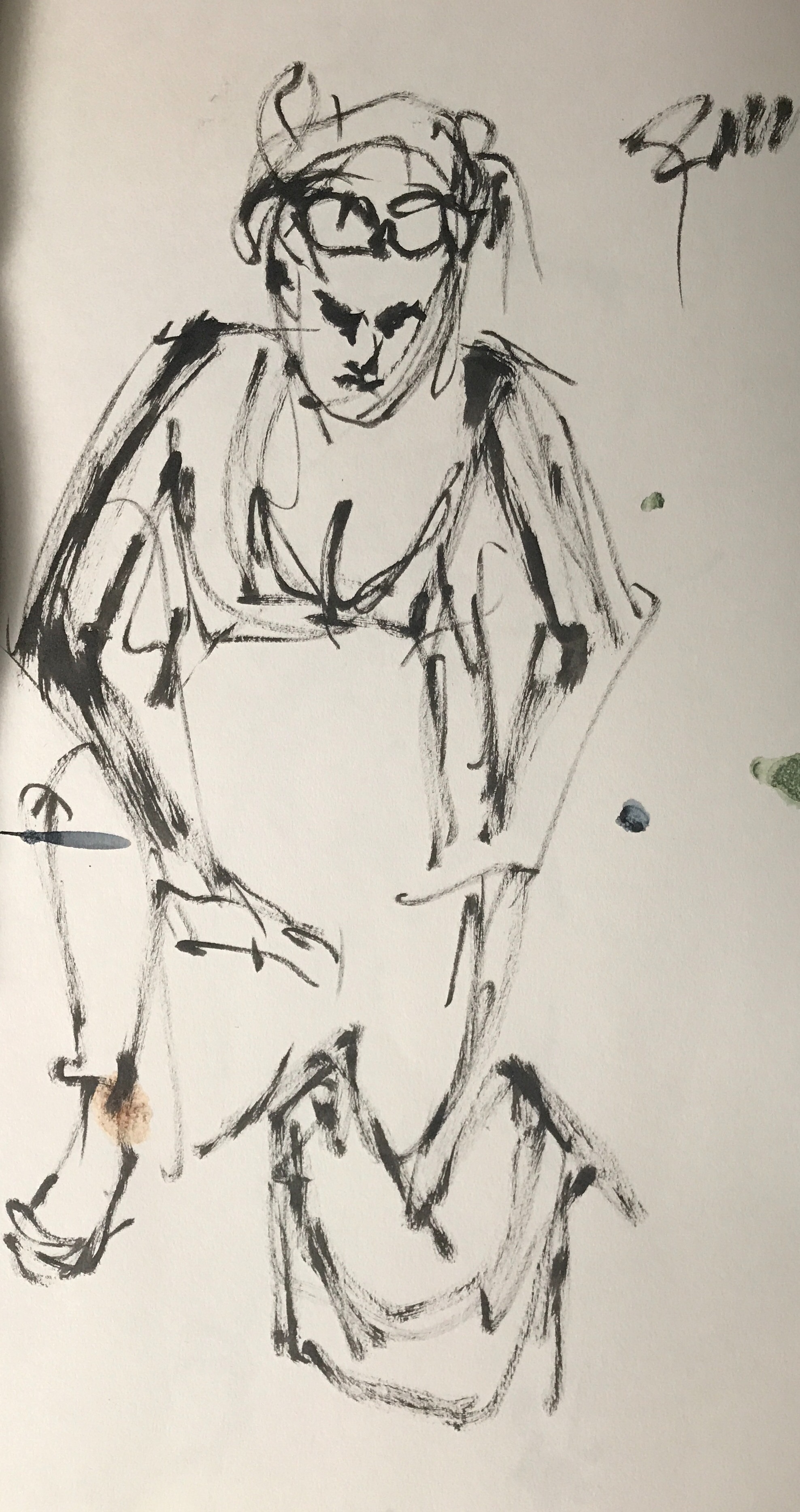 really this is it. I posted this one the other day but am posting it again because I did this and the next one in twenty minutes. I started over because I didn’t like the ink one. Thought the arm was too big. Looking at it now I think her head was too small.