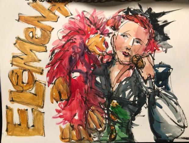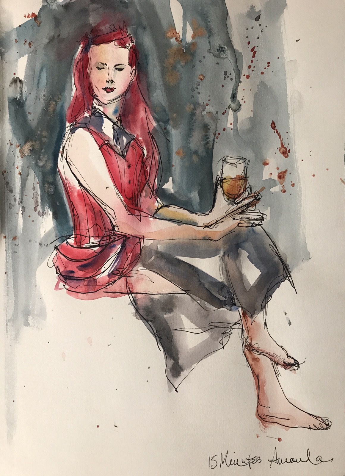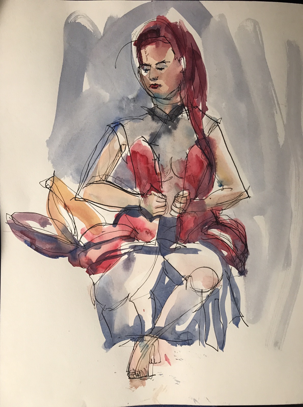 really this is it. I posted this one the other day but am posting it again because I did this and the next one in twenty minutes. I started over because I didn’t like the ink one. Thought the arm was too big. Looking at it now I think her head was too small.