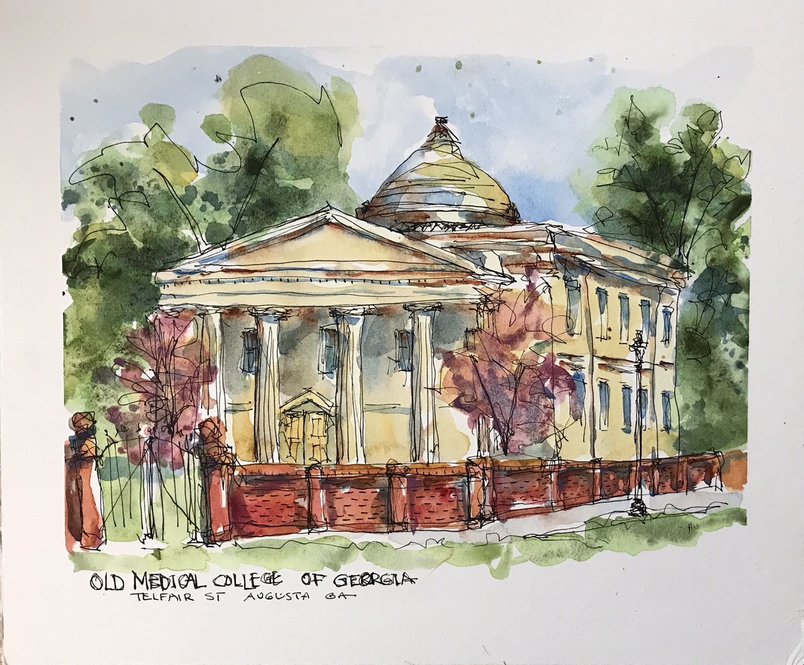 Drawn on watercolor board with a Lamy EF Ted Nuttalls watercolor palette.