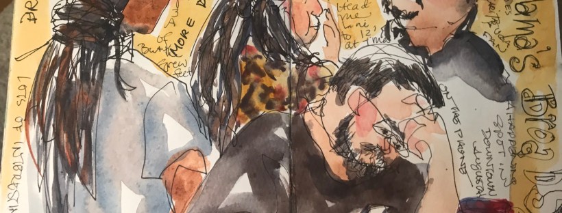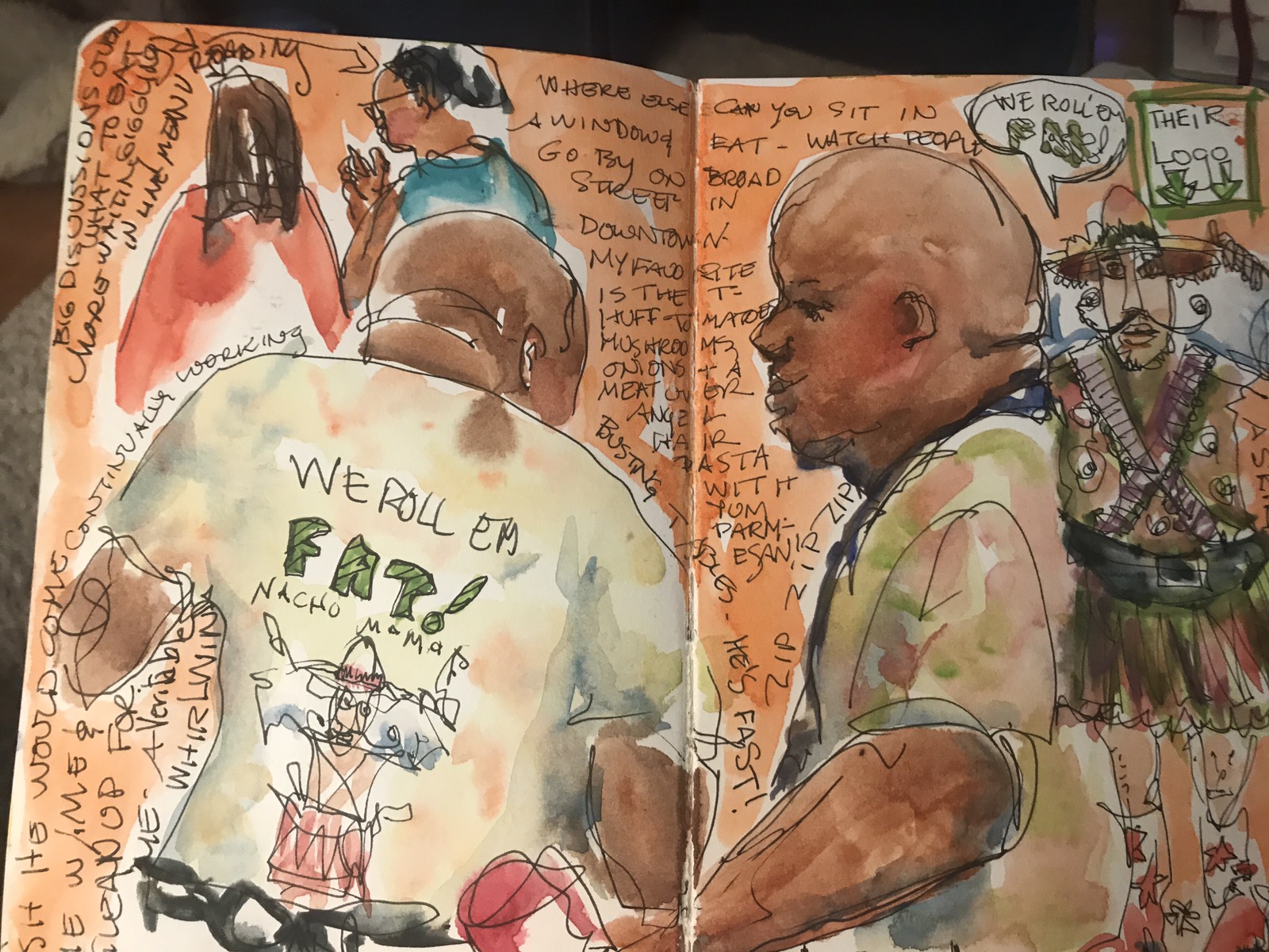 Loved this bus boy at Nacho Mamas. He was working hard the whole time I sat there and sketched. He had on a great shirt that looked hand dyed. He was nonstop