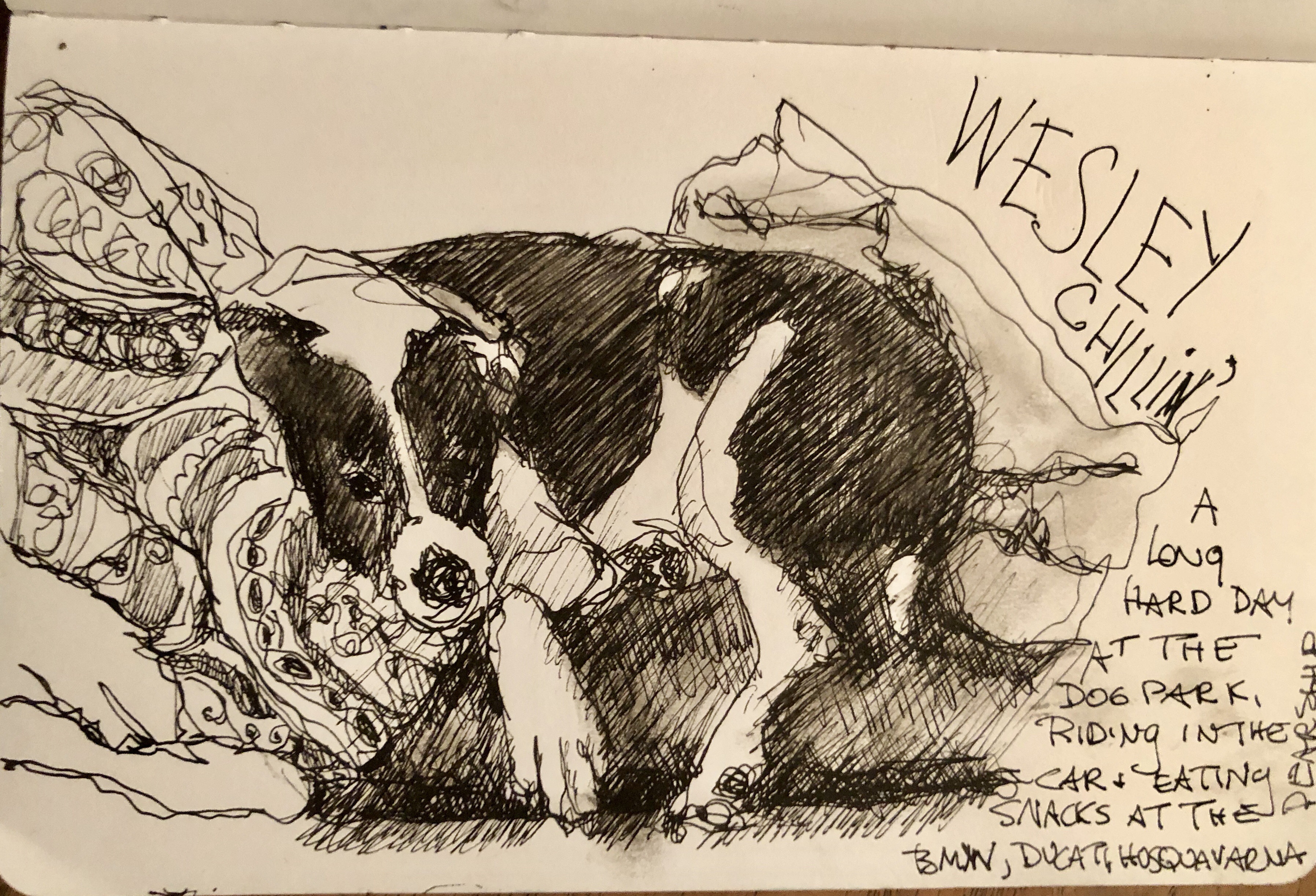 After a long hard day at the dog park, riding in the car, and eating milkbones at the BMW Ducati Husquavarna is Atlanta Wesley was in need for a late afternoon fall nap on the sofa.