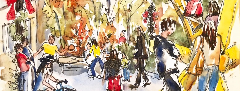 Everybody’s Eating Ice Cream #decatur #oakhurst #harmonyplaza #atlanta #georgia #urbansketching #urbansketch #usk #watercolor #ink #aquarelle #oakhurstmarket