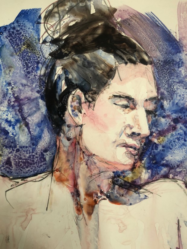 After all. I spent most of the day working on this watercolor on Yupo. I took the photo with my iPad because my phone was making her so dark. She’s still a little yellow which she’s not.