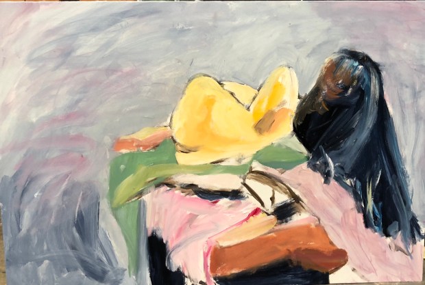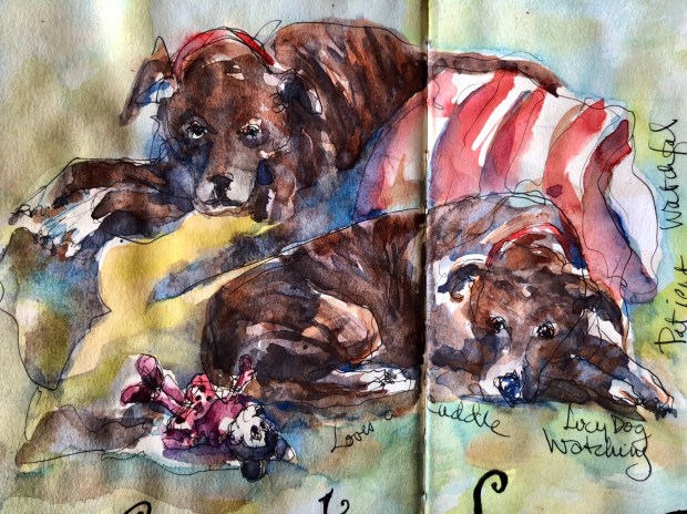 Hard to catch her to draw her. She’s usually hiding on her ultracomfy big bed her favorite spot by the window. The only thing that brings her around is hopes of food – a bowl to lick or a puppy snack.