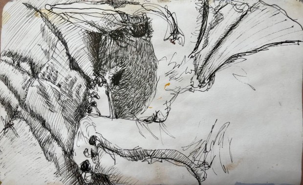 Ink sketch last nite on the sofa while Zoe was curled up next to me.