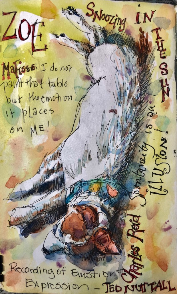 I painted this after streaming some art videos on YouTube especially Ted Nuttall and rereading all my notes from his class. They are copious – a small book with illustrations.
