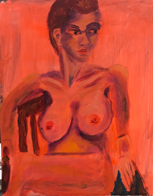 And I should have softened the edges more. Yuck. What else can I say!? Time flies when you only have an hour or so to paint a 19×24″ painting. Aka this ones going in the trash.