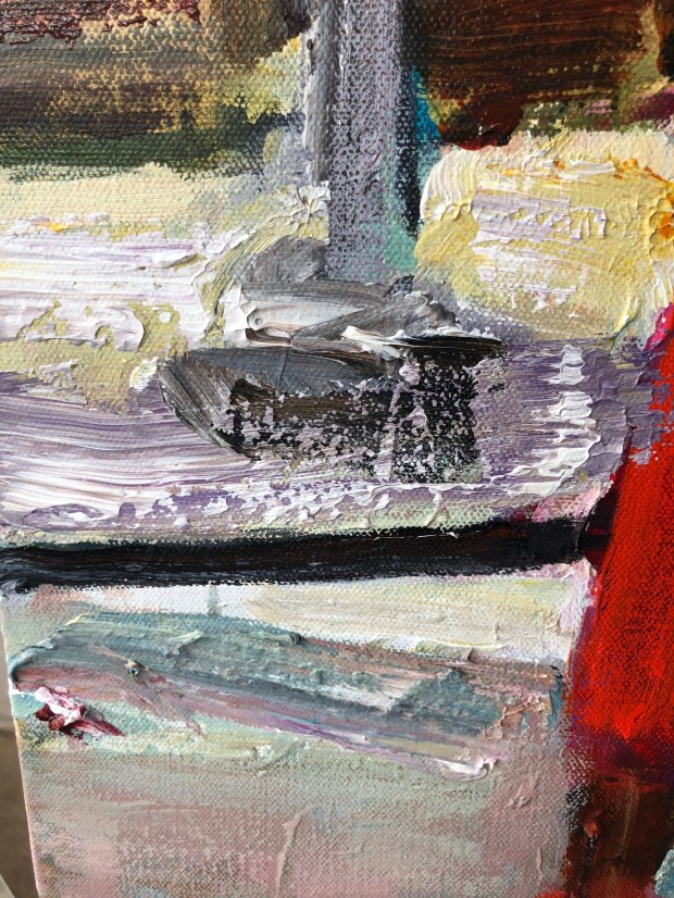 Loving this yummy detail from Dancing in the Streets. I did it with paint that has dried on my palette a little and a big three inch flat. GREAT texture don’t u think.