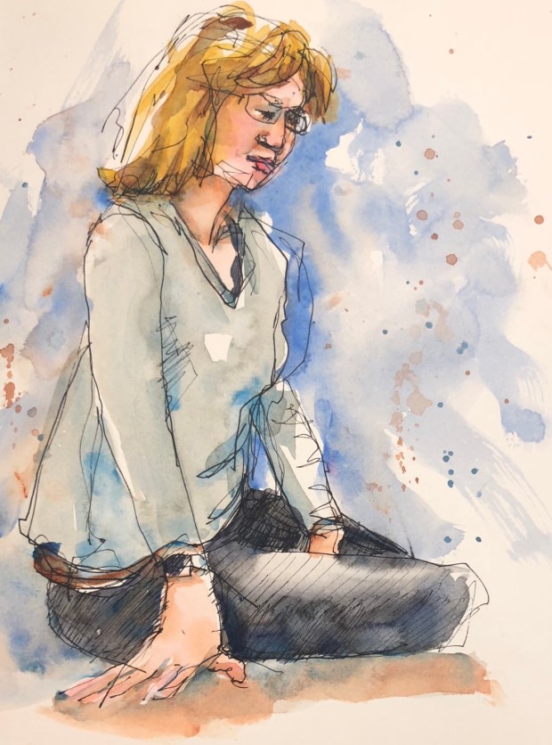 At critique on Monday’s people usually hold still and listen so it’s a good chance to draw people. I don’t even know this lady’s name but I liked her painting.