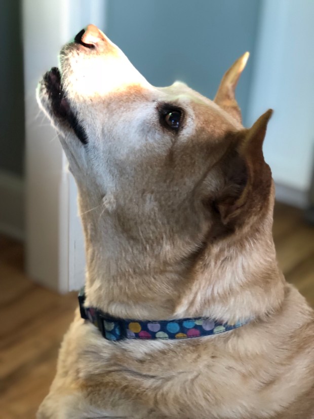 posing the dogs in the early morning light this am. Scootch was all about getting the four day old chic fil a waffle fry.