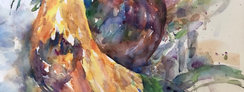 Started. All I got done in class yesterday. Colors used quin sienna quin burnt orange cerulean ultramarine dioxzine purple mineral violet yellow ochre burnt sienna burnt umber
