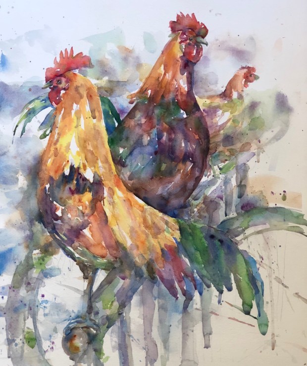 early this am. I decided to lighten up and nearly indicate the third female chicken