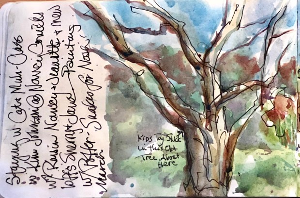 Drawn with a Lamy Safari in my stillman and birn. I painted this with my paints left from class. DS sepentine Green House grass with a dab of hookers Mineral violet shadows yellow ochre for the trim.