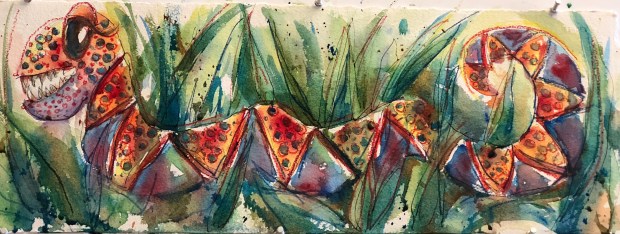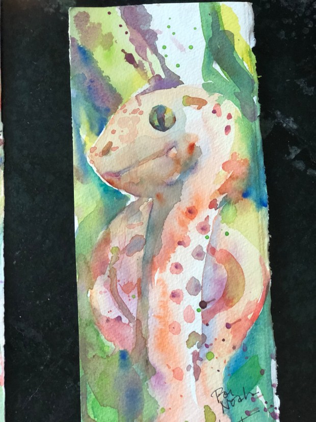 Hmm sometimes they don’t quite fit on the paper. He was slithering off. But I do love his yummy cad red spots.