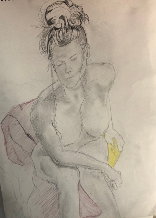 Ilania 19×24” 90 min sketch strathmore Bristol #uscaiken #lifemodel #nude #lead #pencil #sketching #watercolor #allaprima #aquarelle #canson #board #danielsmith #holbein #mgraham #albeyer #aiken #augusta