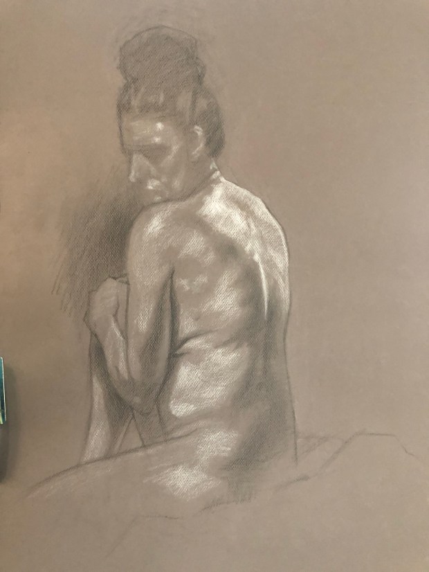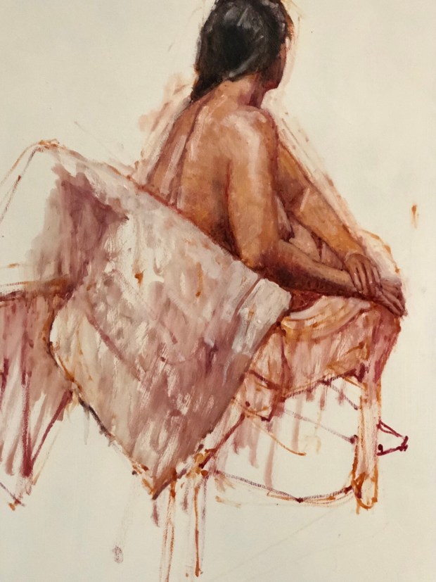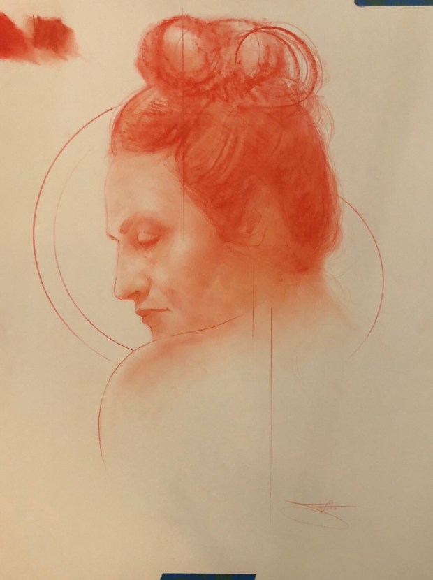 Quite pleased with the way Ilania turned out today. Pretty well for a ninety minute painting from life. Heads a little too round in the back.