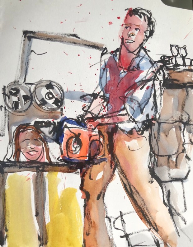Dr Sketchys fun Evil Dead the Musical cast at Chat Noir last night #drsketchys #augusta #pentelpen #watercolor #ink #inkdrawing #art #sketching #dailydrawing #walkingdead #zombies #evildead