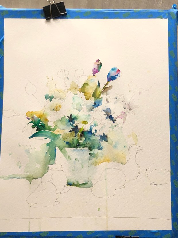 I tried really hard to let the paint mingle on the page. As Charles says watercolor is 50% the painter 50% the watercolor doing its thing.