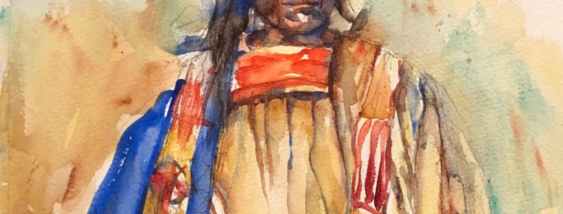 My not quite finished painting of Sitting Bull an Ogalala Sioux medicine man. We were painting from old copyright free photos because it was way to steamy in Savannah.