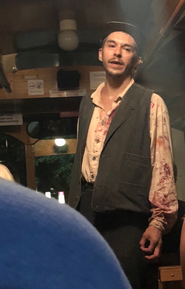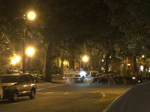 Riding the open trolley til 10:30 listening to ghost stories.
