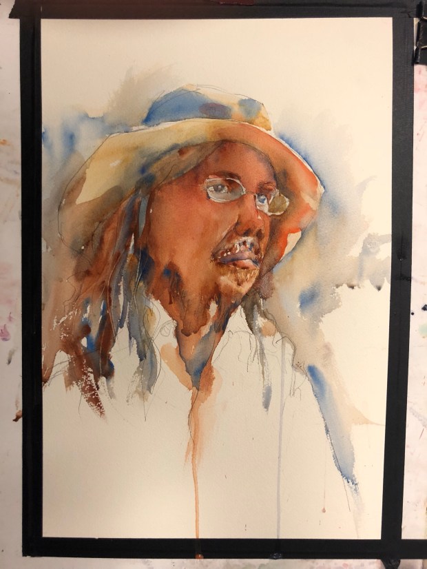 I thought my drawing was off but Charles said no so i wouldn’t argue with him ever. He’s the master. More hair added. Ultramarine and burnt sienna. ![]()