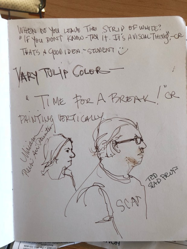 A sketch of some of my class mates. I like to fill my class notes with sketches of people in class so I remember them.