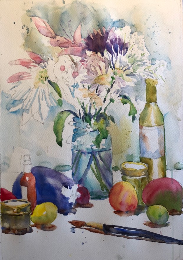 The painting so far. 15×22″ Fabriano cold press paper.