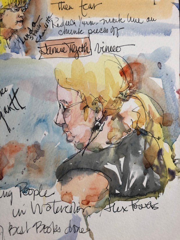 I think Mike has been in every sketchbook I did during class aka my class notes. Usually I draw her with our friend Karen is there but Karen’s moving house so she didn’t take the class with us this time. π