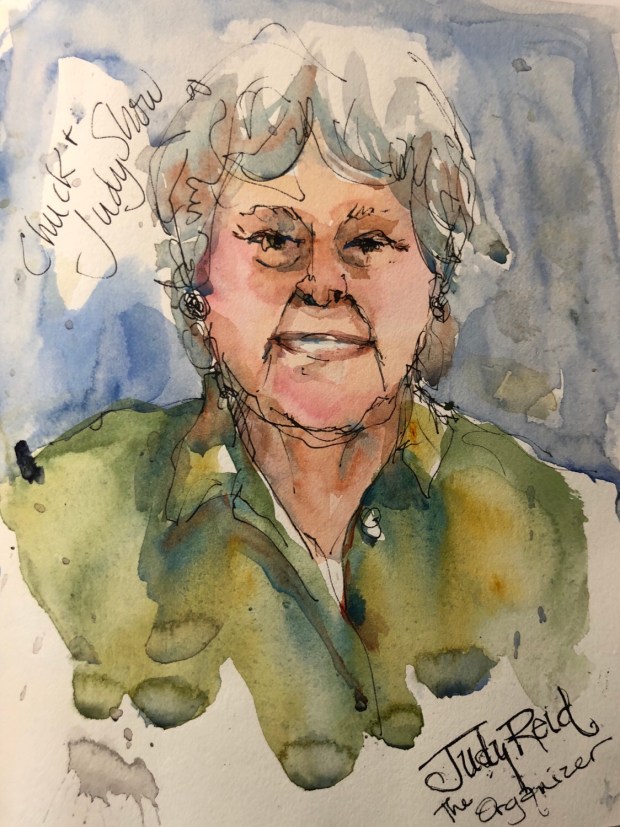 The kindergarten teacher may have retired but she still is herding her class. A funny lovely lady Judy tells a good version of the Chuck and Judy show as she bills them which has been going on since 1961 when they met at U of Vermont. Behind every great painter is a well organized woman if they are lucky enough.