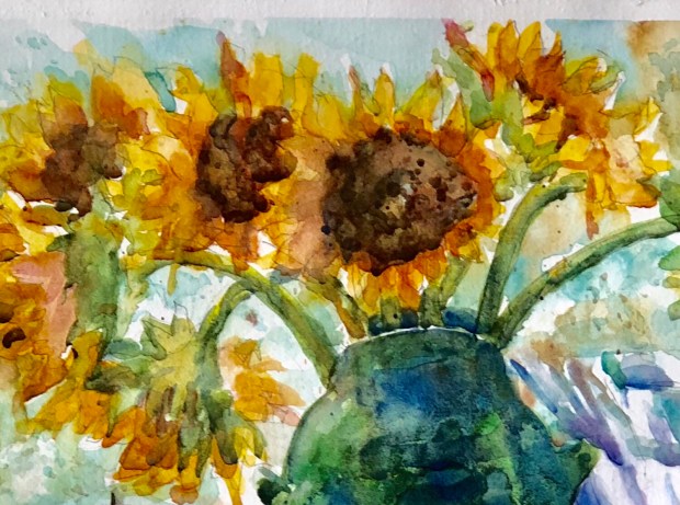 Sunflowers and my green frog pot.