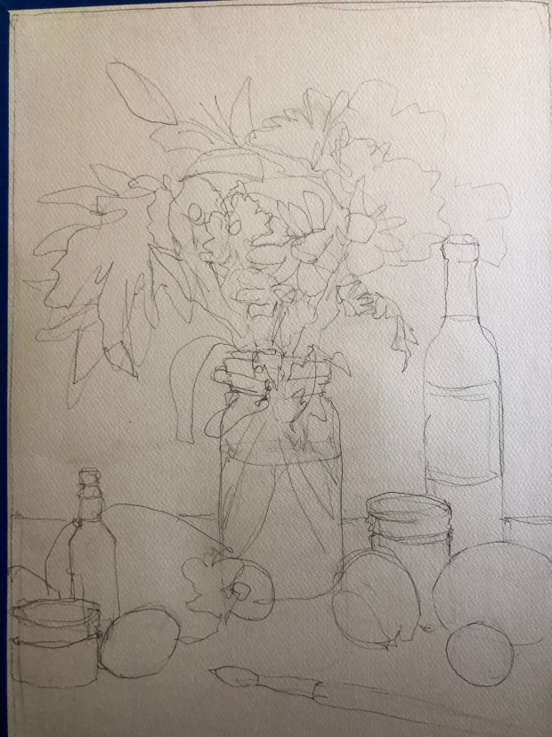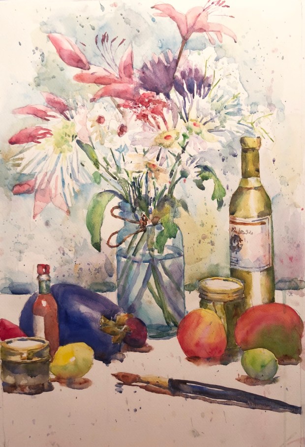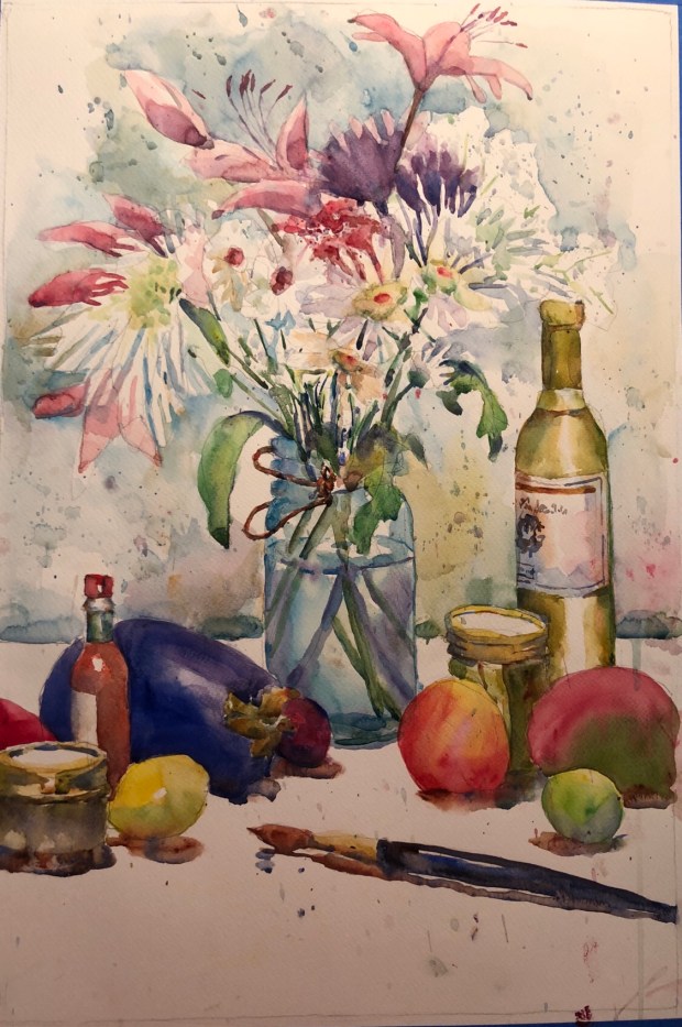 too many white flowers?! That means you have to do a lot of negative painting aka painting behind the petals to make it show. Maybe a darker background?! Darn. Every time I think it’s done I decide wait one more thing.