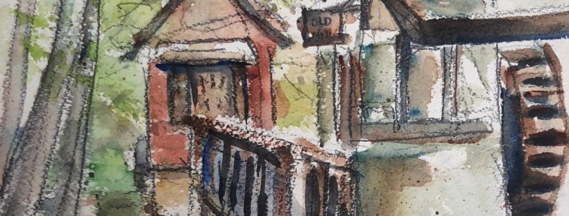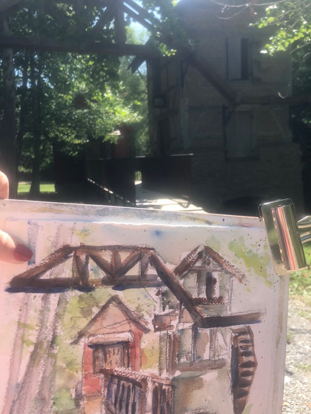 I called it the Harry Potter house. It’s tall three stories with a peaky roof. I think Harry might live there with his wife and children. Don’t you?! It has a sweeping view of the Tennessee from the upper floors I am sure. Sorry I did turn around and take a picture of it for you. Watercolor sooner or later!!