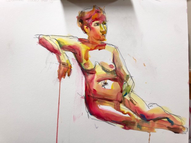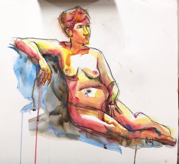 Hugs. Putting my feet up now. Xoxoxo Margaret. Dr Sketchys at Chat Noir! More at https://margaretmccarthyhunt.com/2018/06/28/day-1309-dr-sketchys/#drsketchys #augusta #pentelpen #watercolor #ink #chatnoir #burlesque #inkdrawing #art #sketching #stephanie #lifodel #nude #burlesque #charlesreid #allaprima #dailydrawing #burlesquedancer