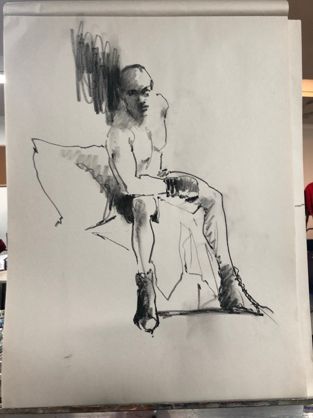 Pepper was our model and so funny. Her trailer trash five minute poses where so complicated to draw. But her character was a hoot. She cane out onto the stage with a funny sarcastic remark every time. And then she would use it as her motivation to go into character.