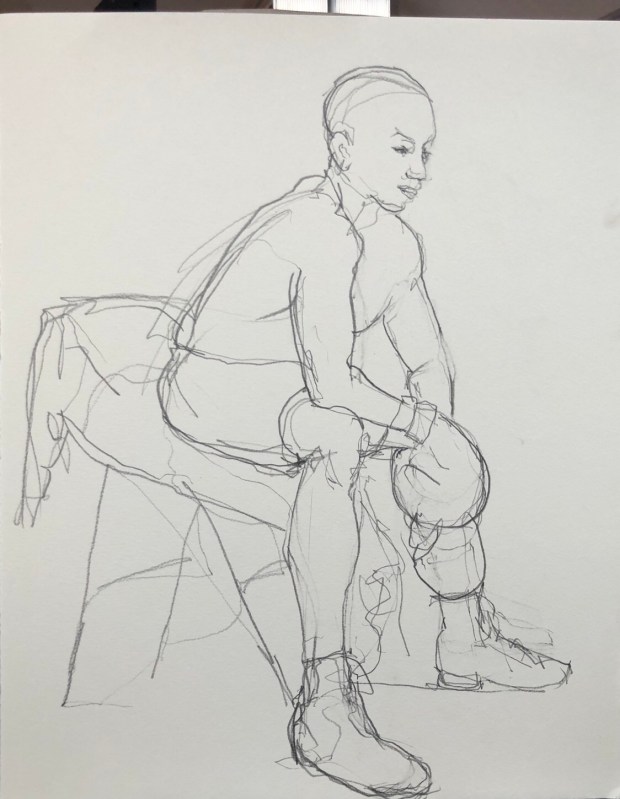 The pose as a boxer was great fun. I was drawing well I think. I didn’t measure til almost the end.