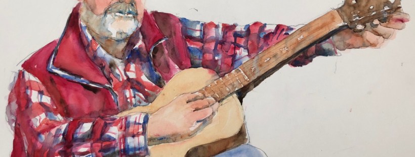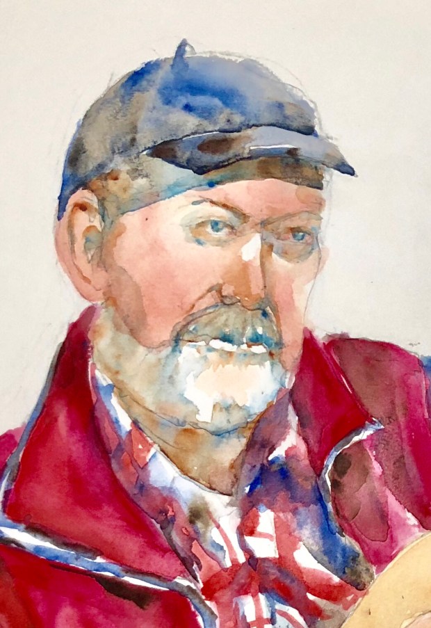 So this is NOT done. The plaid took forever and ever to paint. It was as if everything about painting Gord was complicated. Plaid is alizarin and cad red light ultramarine and cobalt with raw umber and cerulean shadows. Same for the vest.
