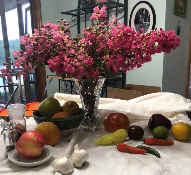 15×22 Fluid cold press 140# Nothing spells summer like crepe myrtles in bloom, delicious heirloom tomatoes and banana peppers.