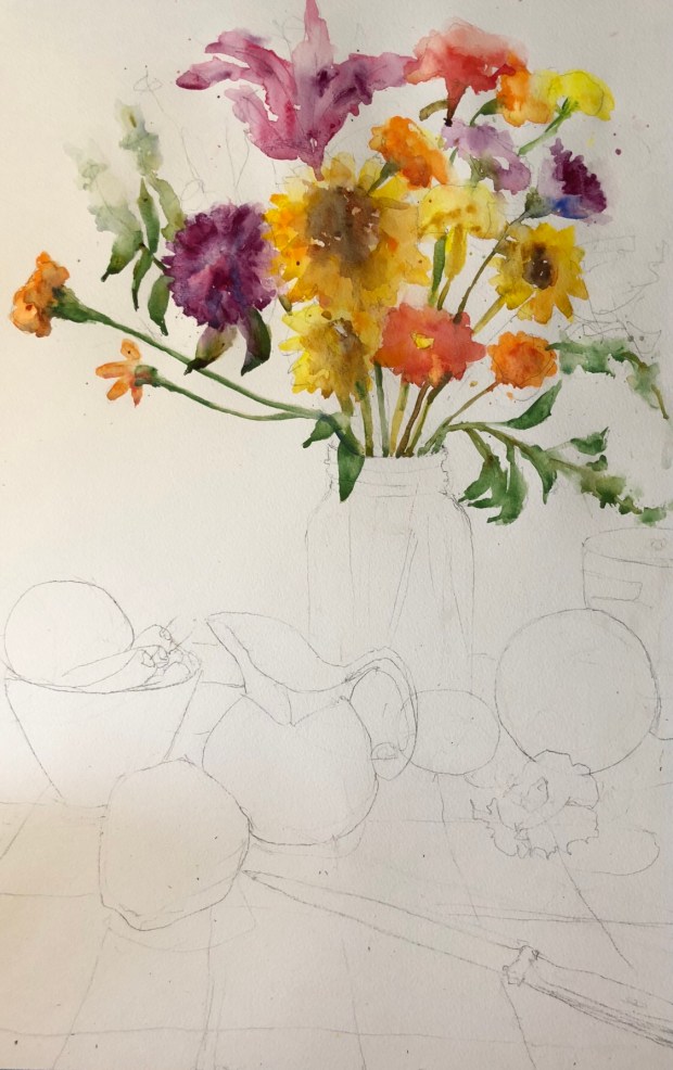 Summertime 15×22β done ?? I never know. #sunflowers #flowers #bouquet #summertime #summer #fluid #augusta #georgia #watercolor #art #painting #artist #painter #aquarelle #atlanta #lostedges #watercolor #lifestyleblogger #lifestylechange #drawing #travelblogger #sketching #lifemodel #charlesreid #artinthemountain @artonbroad