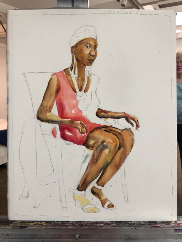 Mona our goddess of a model today Three hours in and more to do. 16×22” fluid watercolor paper. #watercolor #art #painting #artist #painter #aquarelle #atlanta #atlantaartistcenter #lostedges #charlesreid #watercolor #artist #painter #aquarelle #allaprima #lifestyleblogger #lifestylechange #drawing #sketching #travel #travelblogger #holbein #mgraham #danielsmithwatercolors #drawing #sketching #lifemodel