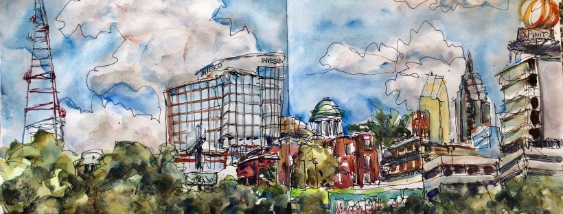 View from Sam Flaxs parking lot #Urbansketching #ink #atlanta #midtown #arches #georgia #watercolor #art #painting #artist #painter #aquarelle #watercolor #lifestyleblogger #lifestylechange #drawing #travel #travelblogger #holbein #drawing #sketching #charlesreid