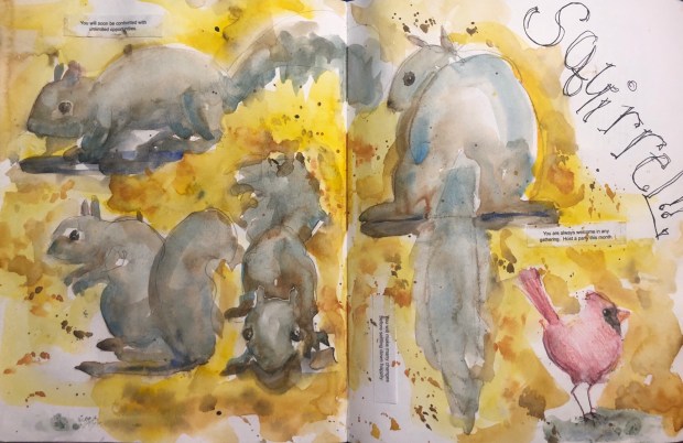 The little buggers aka squirrels. Gone to the squirrels. #outmybackdoor #nature #watercolorpencils #animals #birds #squirrel #drawing #sketchbookskool #cardinals #naturalworld #savannah #savannahriver #augusta #mixedmedia #art #artist #moleskine