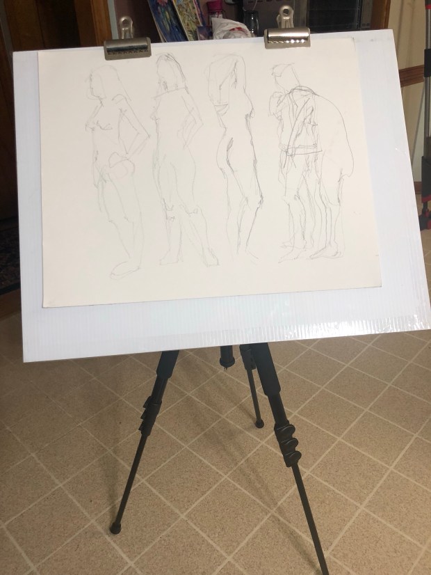 One minute gestures 🤪 Emily to paint or not to paint. #watercolor #art #painting #artist #painter #aquarelle #georgia #atlanta #charlesreid #watercolor #artist #painter #aquarelle #lifestyleblogger #lifestylechange #drawing #sketching #lifemodel #tutorial #tripodeasel