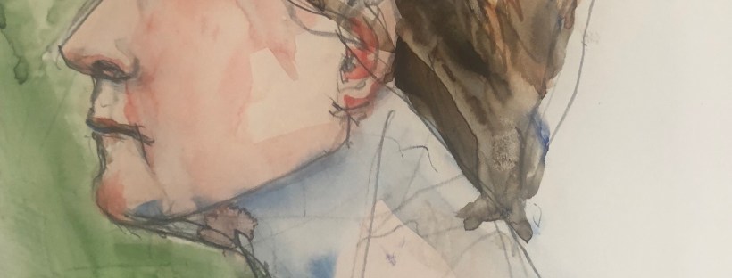 #2 Derwent sketch pencil Strathmore Bristol and watercolor. Same old colors. Cad red light and cad yellow light for the skin. Burnt sienna cerulean and dioxzine shadows. Hair burnt sienna ultramarine and burnt umber.