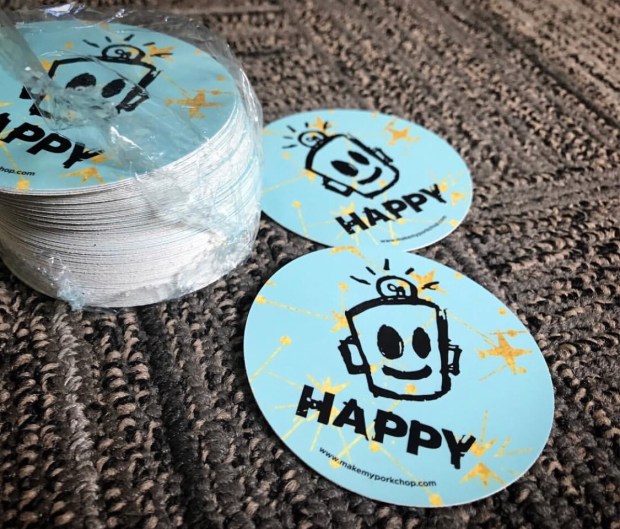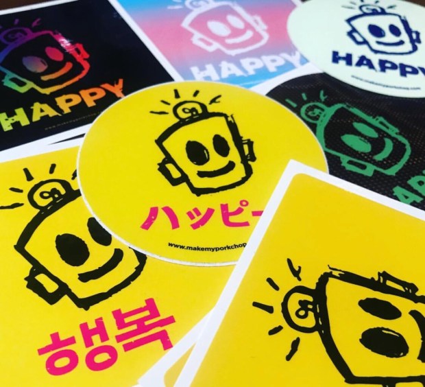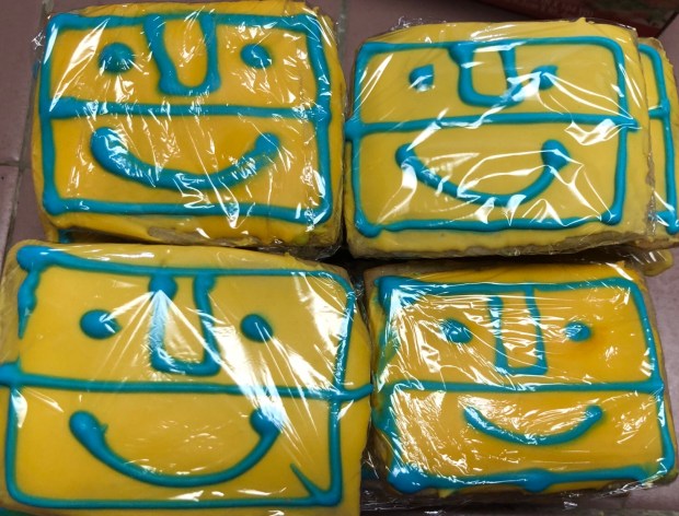 First time ever making royal icing too. Was so happy when the icing hardened up so I could wrap these babies up for delivery to Leonard “Porkchop” Zimmerman a local artist and the genius behind the Happy stickers buttons and the Happy movie.