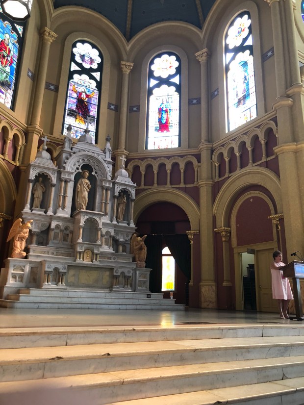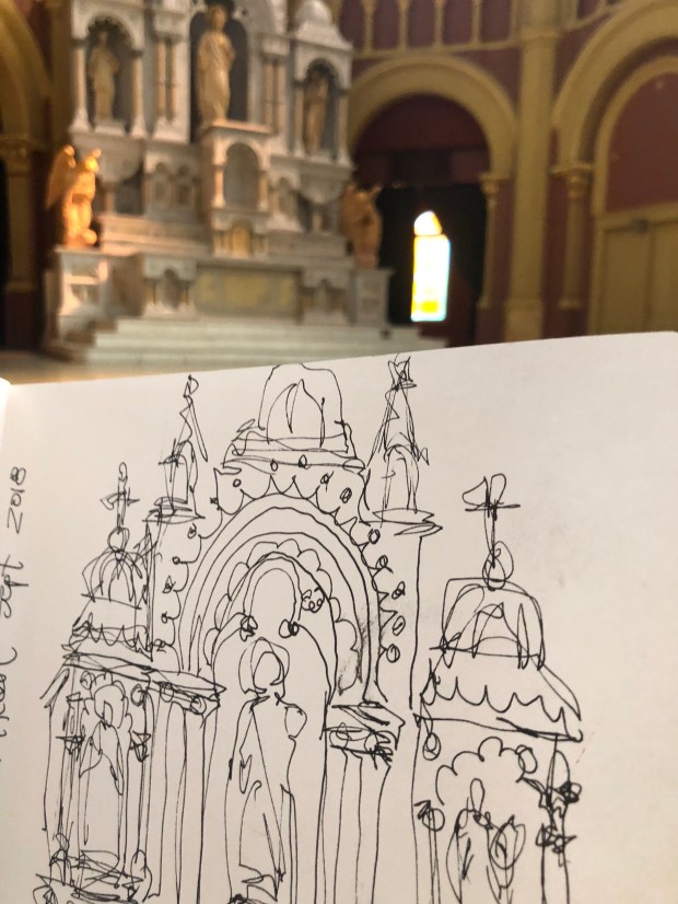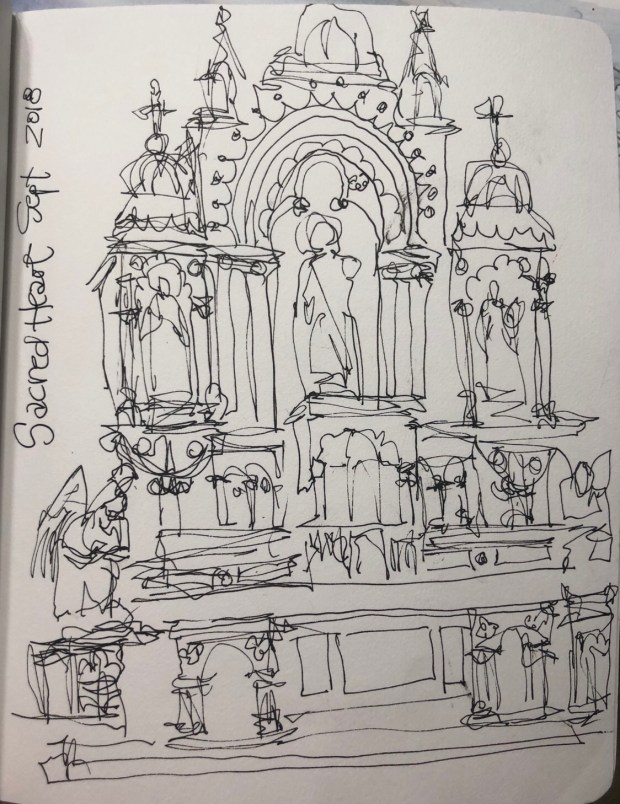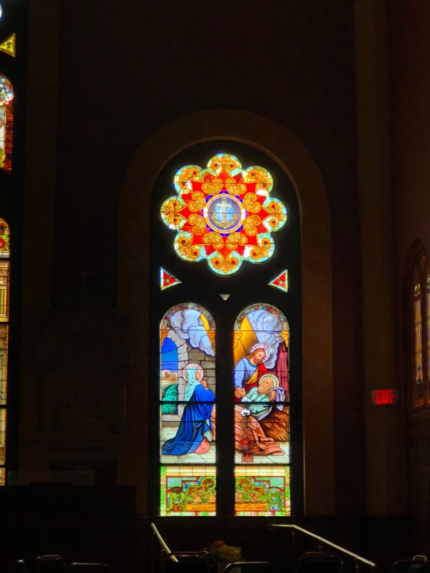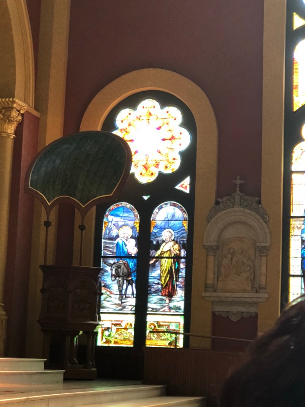 And today was a treat because the light was streaming thru all the fabulous stained glass windows that I faced.