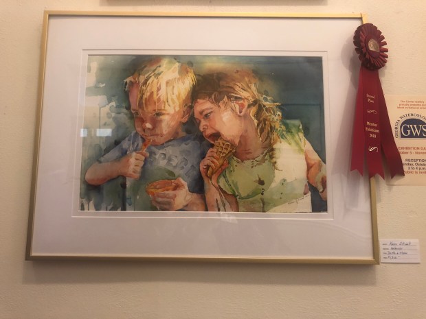 And NOPE it didn’t get a ribbon. It DIDNT juried get into the Georgia Watercolor Show or The SC Watermedia Show. I was feeling down. Throwing in my new Davinci 10 I bought with some of my prize money.(LOVE that brush. Wore My last one out.)