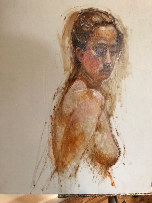 I do intend to lift some of the shadows out because the colors didn’t mingle enough. Just wet and blot them and repeat. Then paint again.