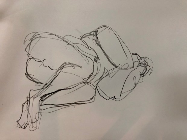 I quite like the head on this one. A one minute scribble can seem to last along time when you are trying to draw a figure.